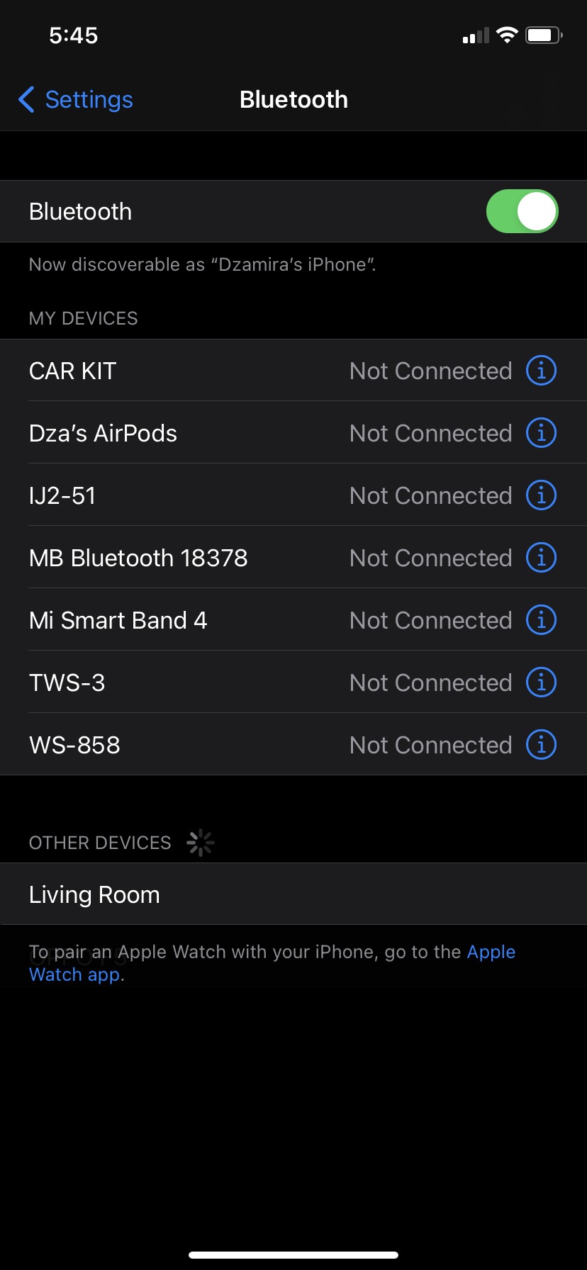 - Tap the “i” icon next to a Bluetooth device (it doesn’t have to be connected)