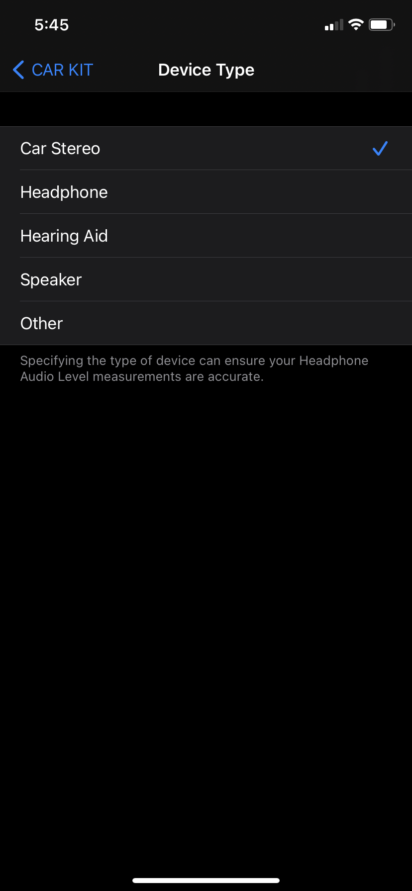 - You’ll get five options to choose from—car stereo, headphone, hearing aid, speaker, and other. Select the one that fits your device best