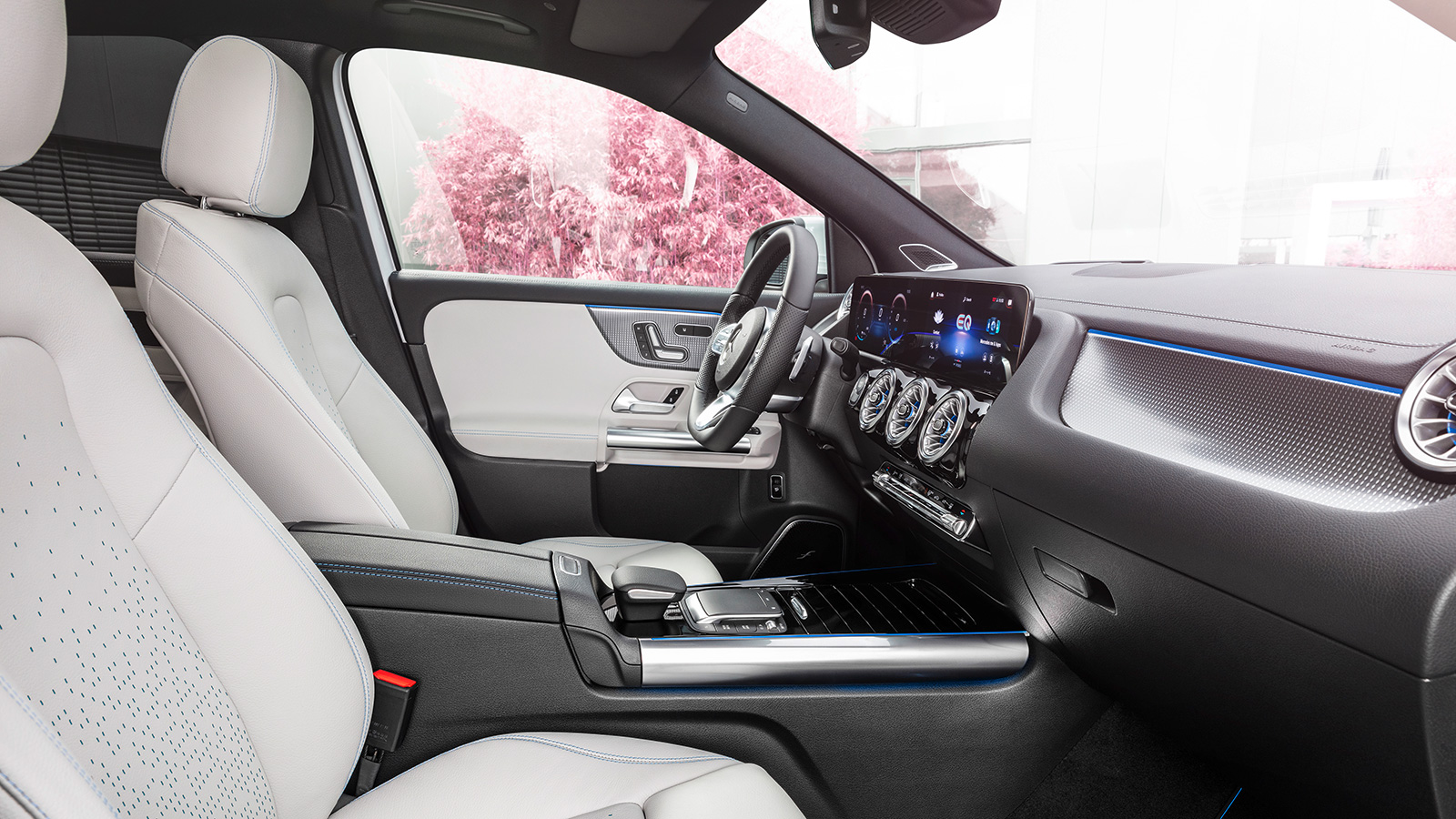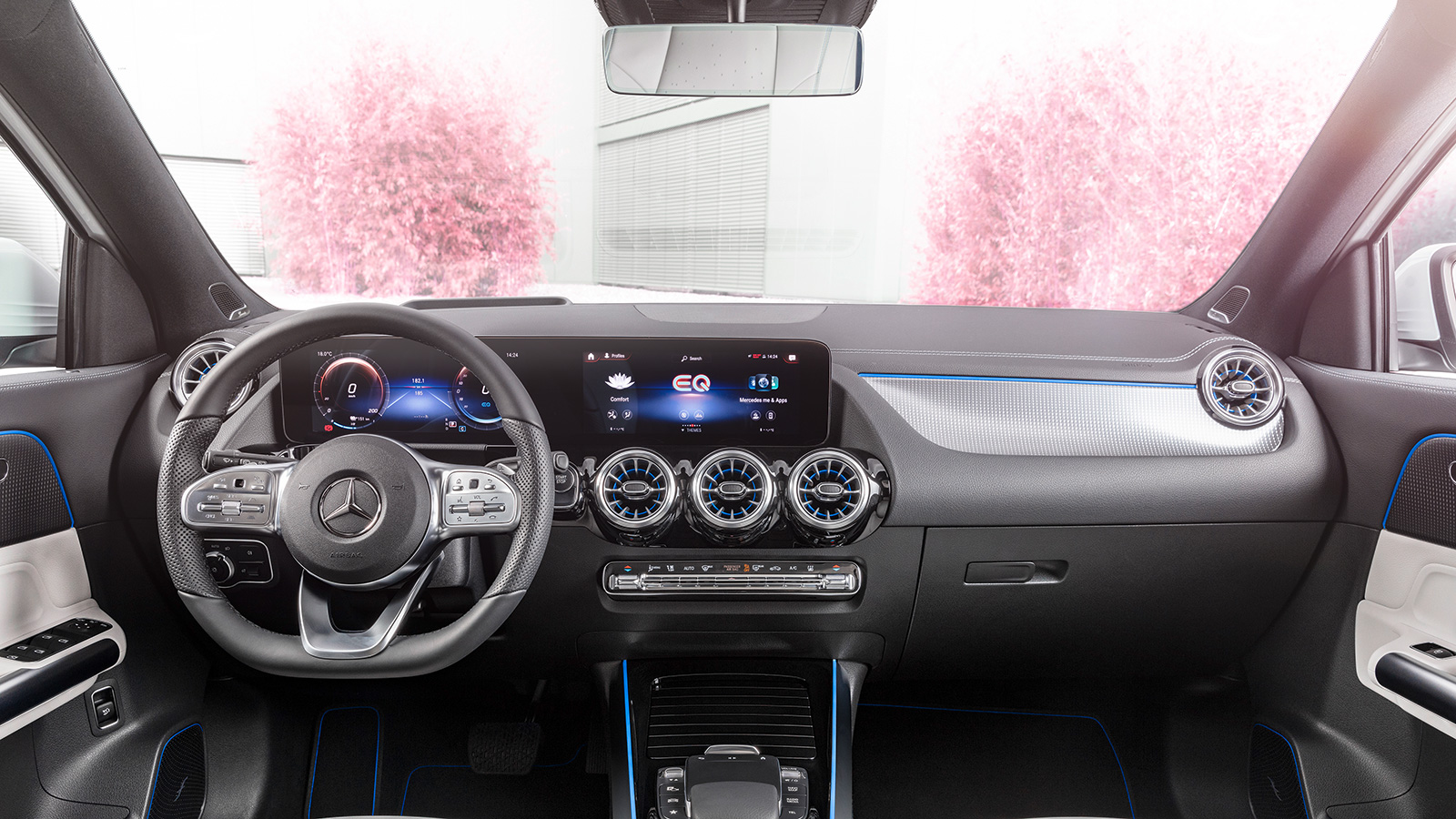 Mercedes will offer the EQA in Electric Trim in Progressive and AMG line model, there is also the Electric Art trim option that includes a grey faux Artico leather and rose gold highlights on the air vents. There is also a special Edition 1 version that features blue air vents and blue fabric under genuine perforated grey leather.